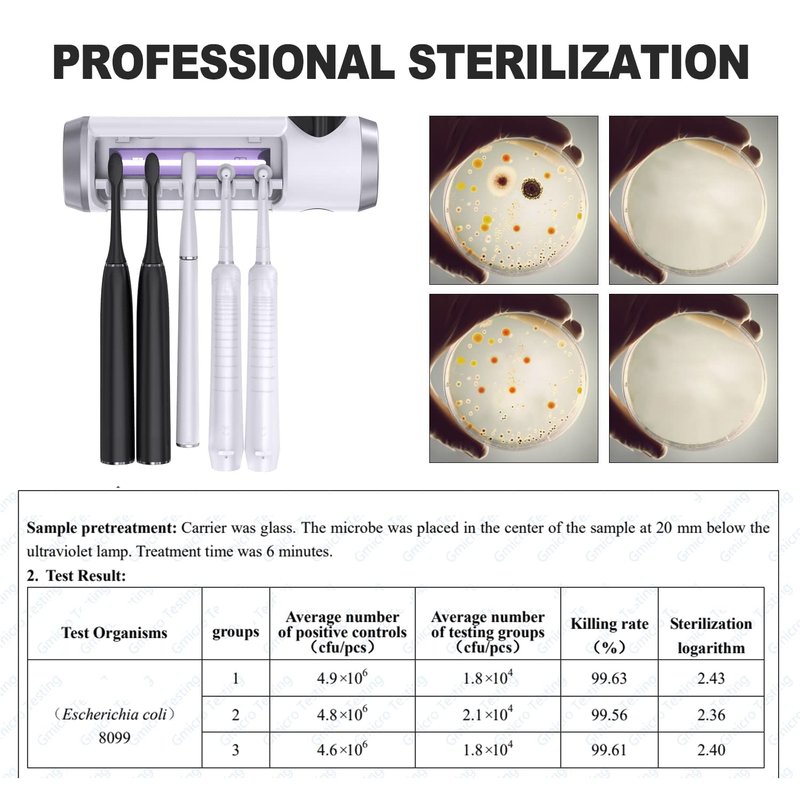 - ▲ EFFICIENT CLEANING FUNCTION - This uvtoothbrush holder kills up to 99.9% of invisible harmful substances from toothbrush, providing you and your family with clean toothbrushes for good oral hygiene.