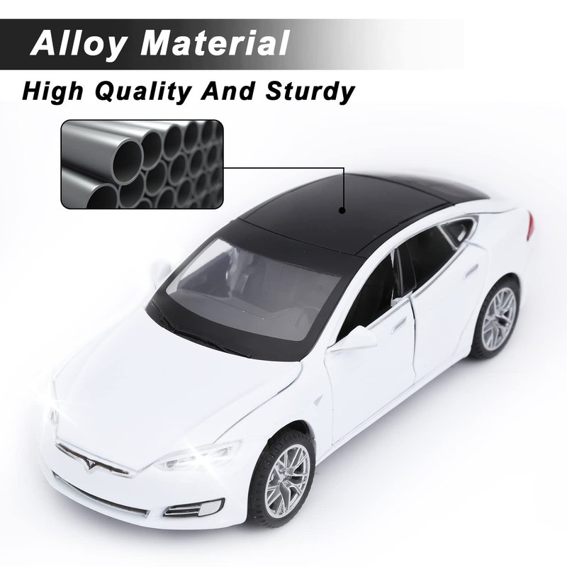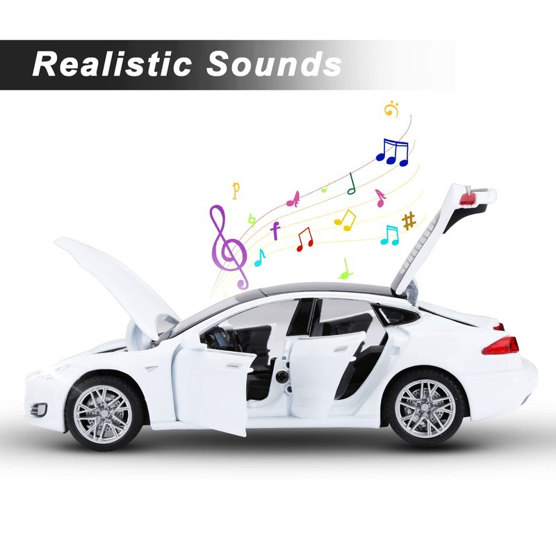 SASBSC Toy Cars Model S Die Cast Metal Model Cars with Door Open Light and Sound Pull Back Car Toys for Boys and Girls 3-12 Years Old (White)