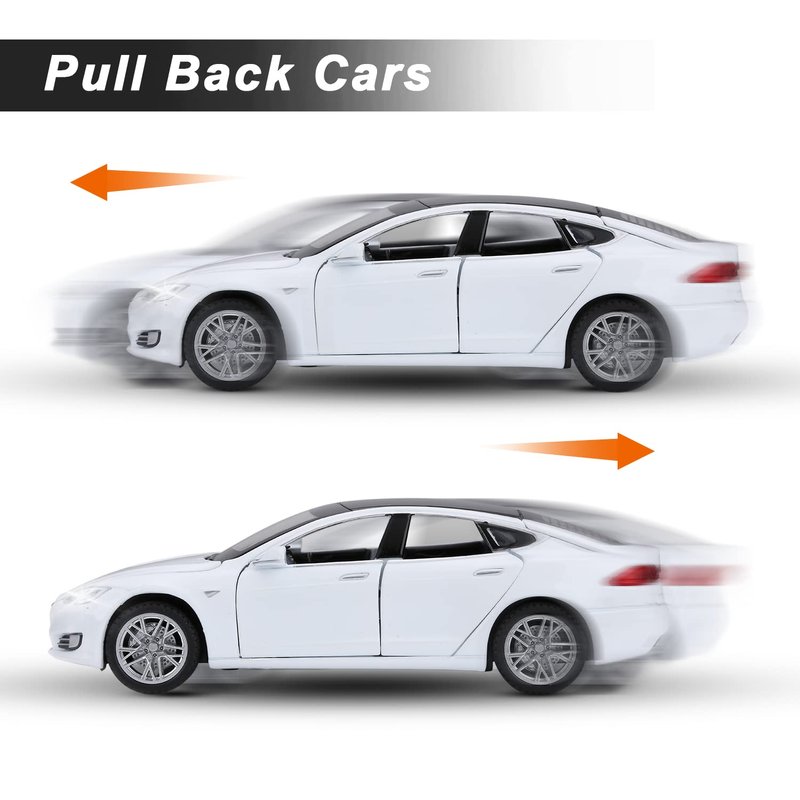 MODEL CAR TOY CARS Material: Alloy diecast +ABS Product size: 6.3*2.4*1.8 inch Scale: 1:32 Battery: AG13/LR44 * 3 (1.5v) Function: 4 doors can be opened, rear wheel with pull back function, sound and light function Product use: electrostatic car model, auto parts, decoration set, car model exhibition,gift for kids Package include: 1 x Tesla Model S 100D Car Alloy Model