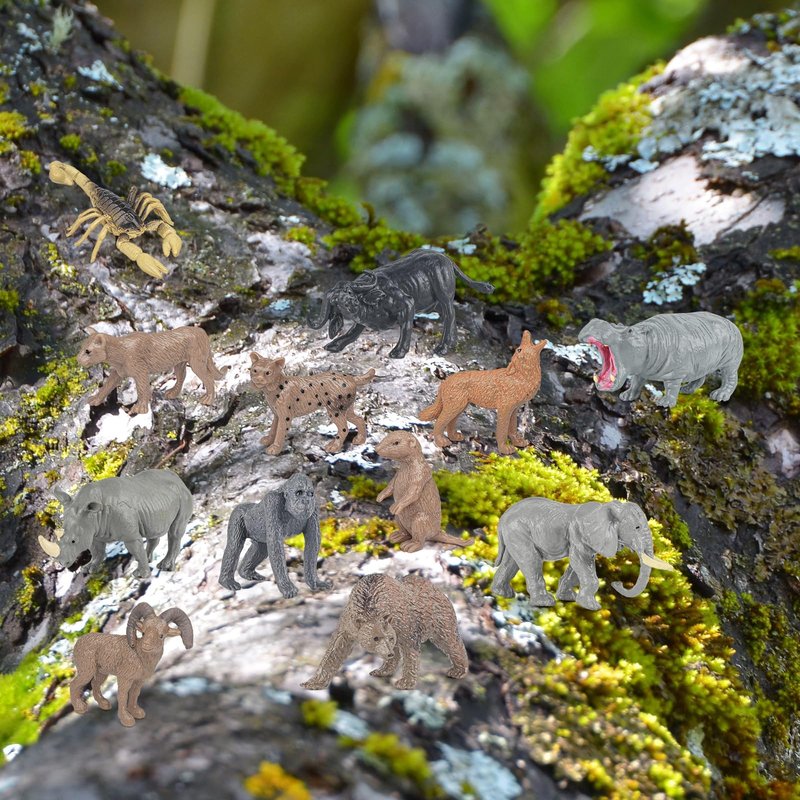 Saseocan Mianimals Wildlife Animal Model Toys 12 PCS Mini Elephant Buffalo Wolf Brown Bear Rhino Figurine Family Party Favors Supplies Cake Toppers Set Toys for Over 3 Years Old Boys Girls Kids