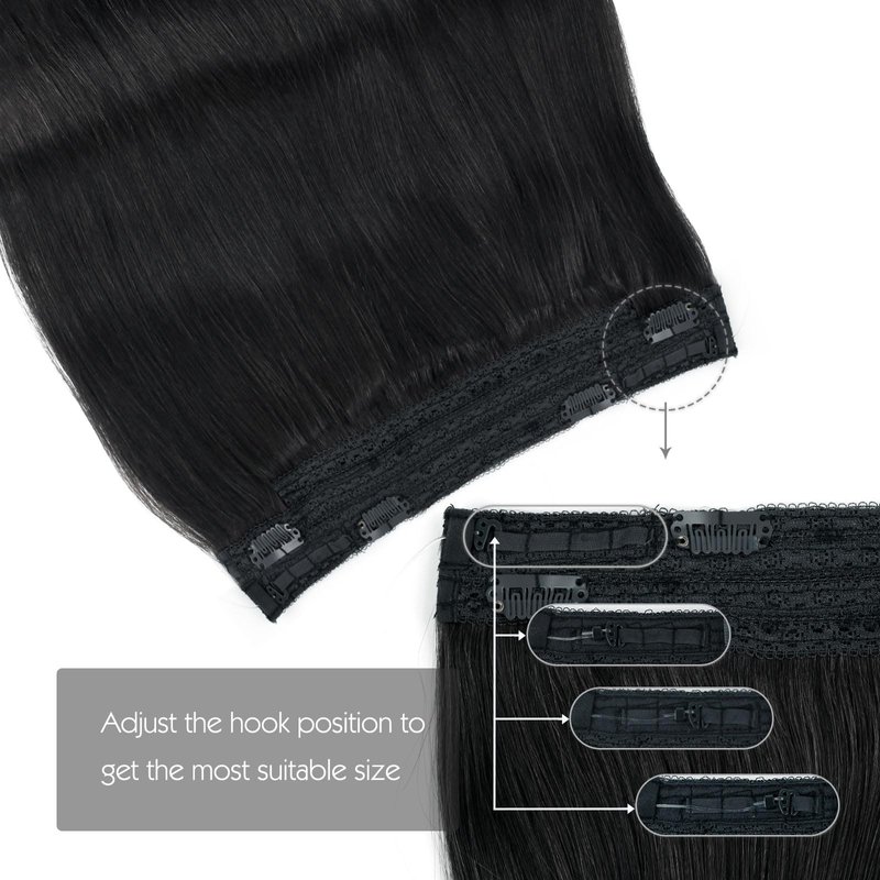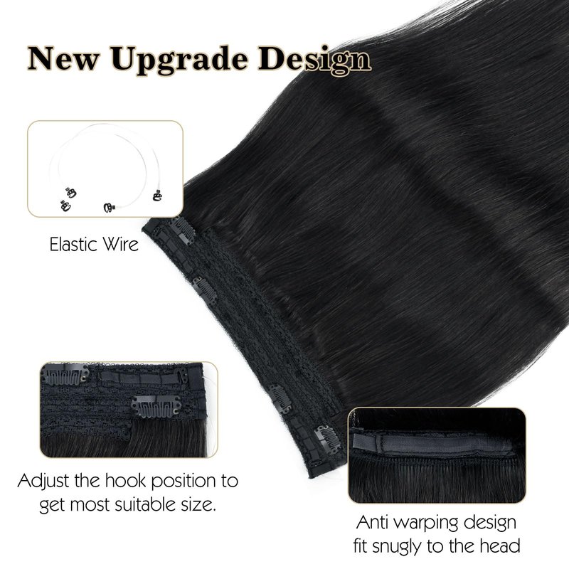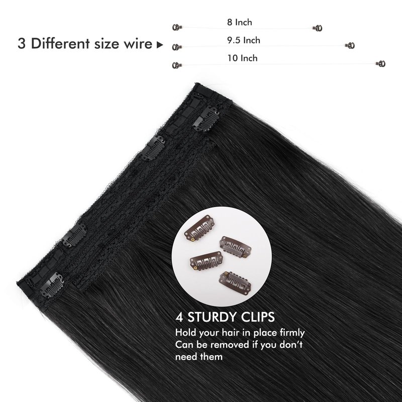 Sassina Invisible Wire Hair Extensions Real Human Hair with Transparent Wire Adjustable Size Secure Clips Natural Straight Secret Miracle Hairpiece, 1 Jet Black 22 Inch 100 Gram