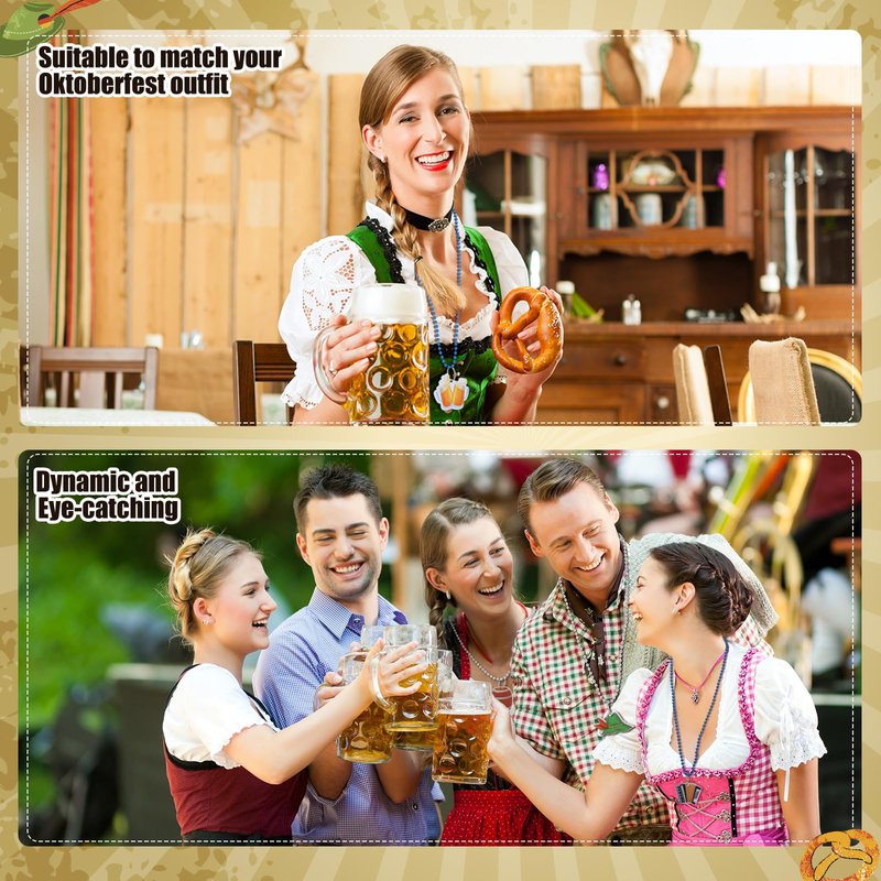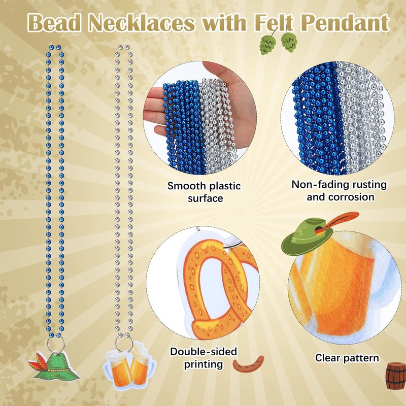 - Safe Material: the white and blue bead necklaces are made of quality electroplated plastic, making them not easy to fade and damage, and the pendants are made of felt with clear printing on both sides; Due to these kinds of material, the Oktoberfest accessories are lightweight and stress free to wear, so you can wear them to parties without worry