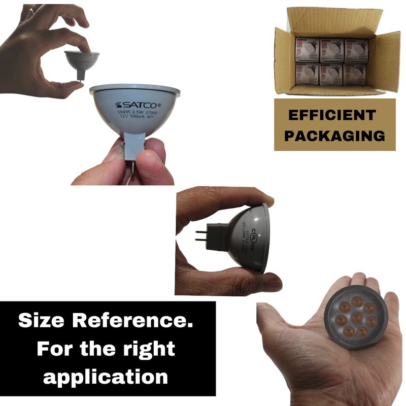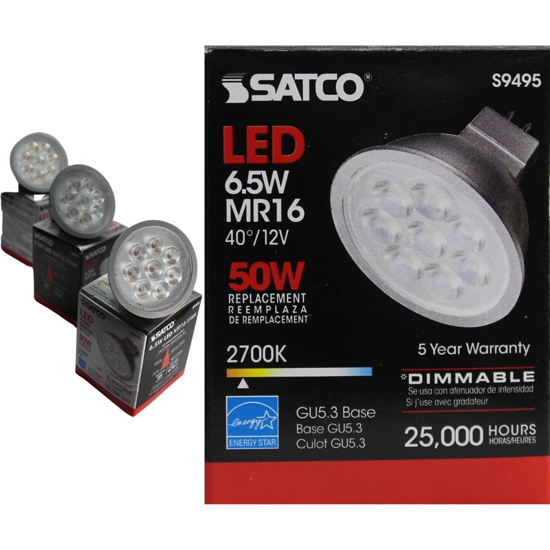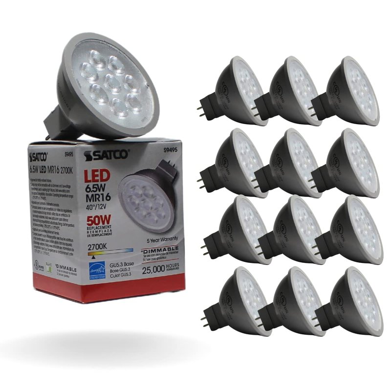 SATCO S9495 Reflector LED Light Bulb MR16 6.5 Watt 12 Volt 2700K Warm White Light 40 deg. Beam Angle; GU5.3 Base (12 LED Light Bulbs)
