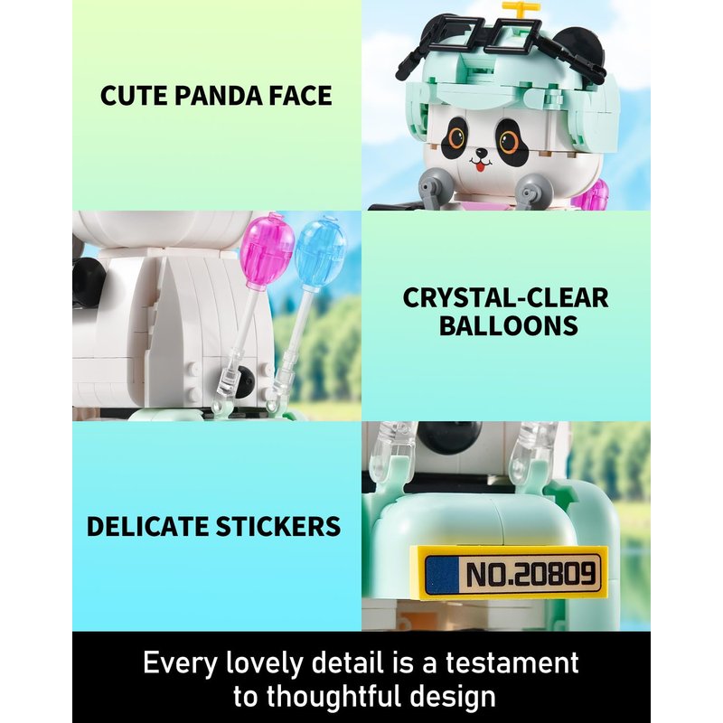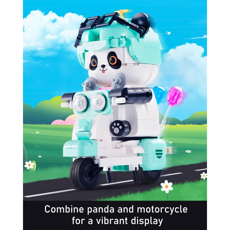 SATHIBI brings cute panda and motorcycle combined building block toys.