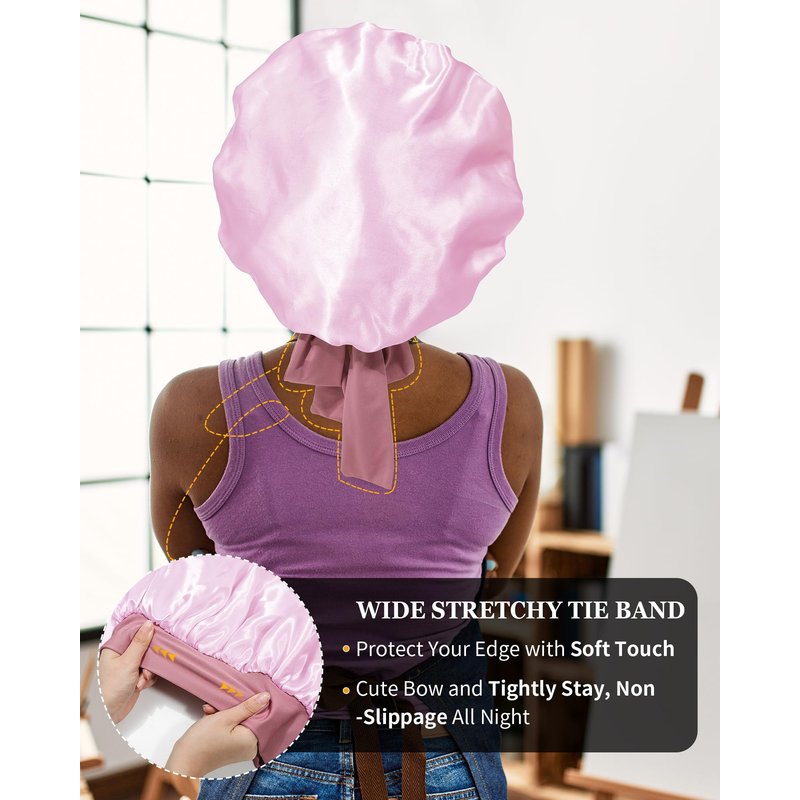 - Style: Double Layer Satin Bonnet With Elastic Tie Band