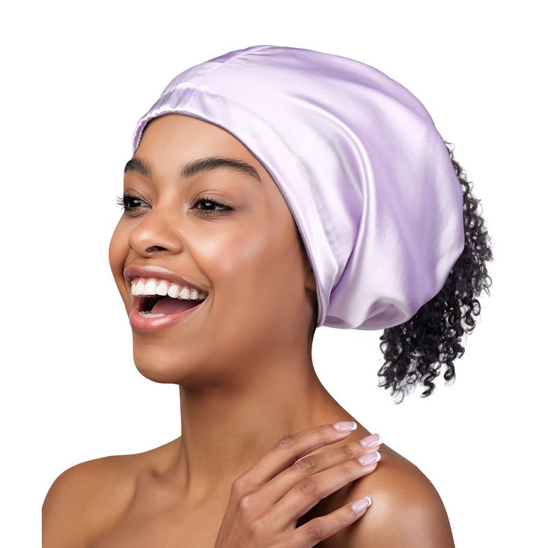 Satin Cap Slip-on Head Scarf Braids Bonnet Skull Cap Lavender