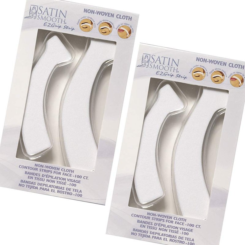 Satin Smooth EZ Grip Non-Woven Contour Facial Waxing Strips 100 ct x 2 packs No Mess, No Fuss Unwanted Facial Hair Removal EZ Grip Non-Woven Contour Facial Waxing Strips are designed to optimize hair removal while giving ease and comfort to any waxing technician or beginner. Suitable to be used for eyebrows, upper lip, and chin. Designed to fit below or above the eyebrow to achieve a perfect arch, while providing contour coverage for upper lip and chin for maximum hair removal. Durable, Convenient Waxing Non-Woven Cloth EZ Grip Contour Facial Waxing Strips are thick, non-woven, highly resilient, and can be used with any depilatory wax system with no fear of separation or tearing making it worth the purchase. Whether you want to enjoy smooth facial skin or achieve perfectly shaped eyebrows, these strips are the perfect choice for delicate facial hair removal. Clean and Hygienic Hair Removal Strips These disposable wax strips from Satin Smooth keep waxing sanitary and hygienic. Simply throw away each strip after every efficient use and begin with a fresh and clean strip as needed. Go for the wax brand choice professionals insist upon! Pro-Approved,100 % Cruelty-Free Hair Removal Waxing Cloth Brought to you by Satin Smooth- a professional brand in the hair removal industry for over a decade, offering advanced formulations and ingredients that elevate an ultimate waxing experience! Committed to providing you with professional-grade hair removal products to help you achieve smooth, beautiful, and hair-free skin. All products are 100 % cruelty-free, never tested on animals on animals.