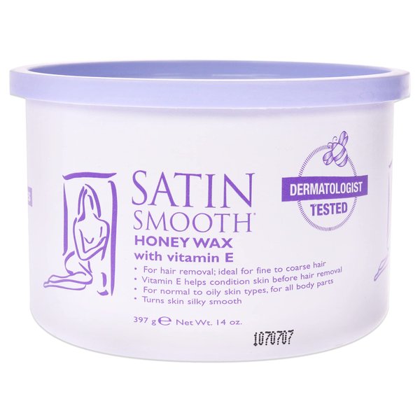 - SMOOTH AND GLOWING SKIN AFTER USE: The combination of vitamin E and honey creates an all-purpose depilatory wax that’s good for skin and forms a natural buffer between wax and skin. Produced with natural pine resin and real beeswax, the Satin Smooth Honey Wax with vitamin e lets you enjoy a fuss-free hair removal process, making your skin glow with radiance while leaving your skin touchably soft and smooth!