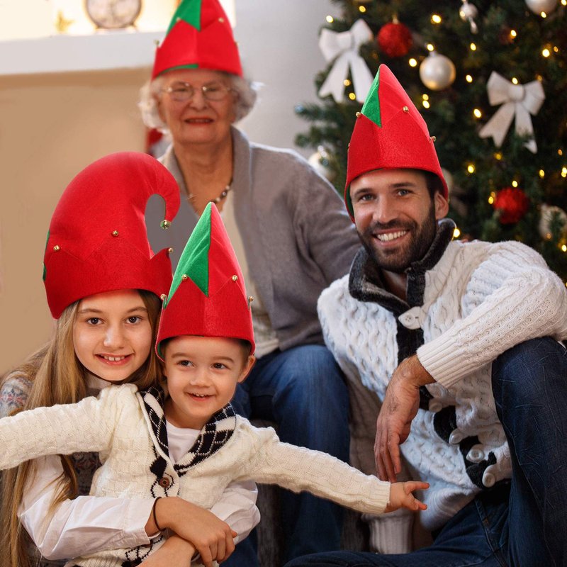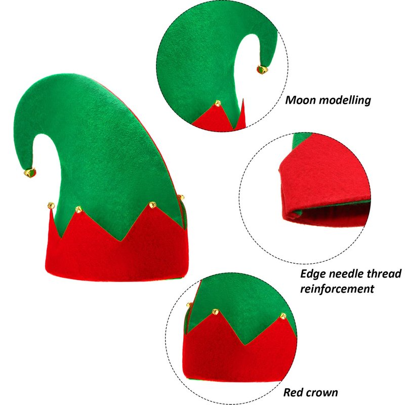 - You will receive 2 packs festive red-green felt elf hats with a large bell and 6 small bells; Put on our authentic elf hat, pair with your elf costume, and enjoy the impromptu play at a Christmas party or as a Santa's little helper at the holiday mall