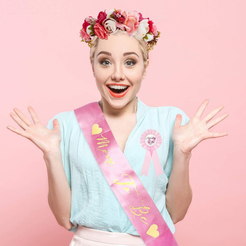 - Lovely style: the pins are printed with the words "Mom TO BE", the sash has printed with the gilding font and the crown is full of artificial flowers, all of these cute designs can express the parents' expectations and love