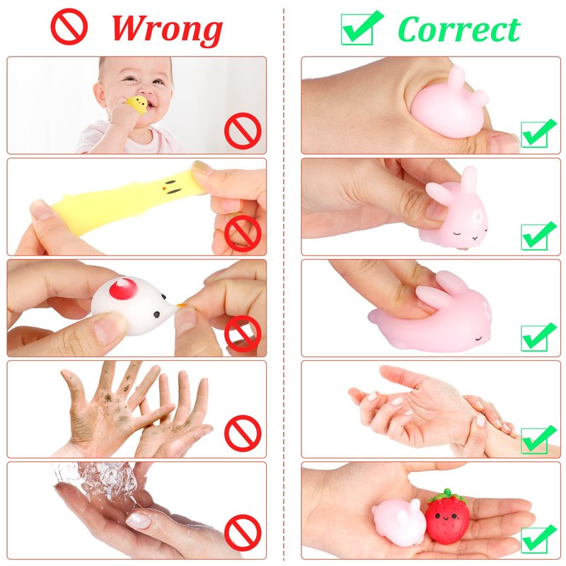 5. Please do not rub or stretch overly. If over-squeezed, the paint on the squeeze toy may fall off.