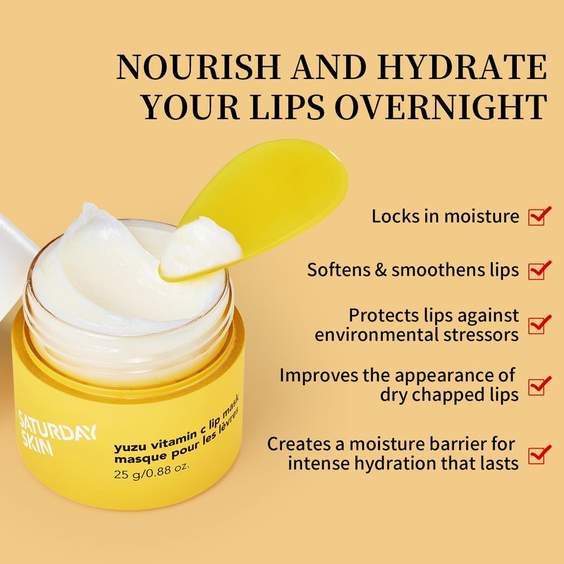 Saturday Skin Yuzu Vitamin C Lip Mask Overnight Lip Sleeping Mask Moisturizing For All Skin Types Softer & Smoother Pout Lip Balm Hydrating Infused with Vitamin B5 Non-Sticky, Vegan & Cruelty-Free