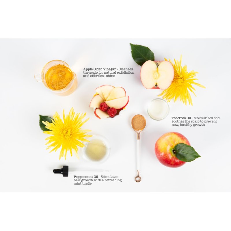 - Apple Cider Hair Rinse w/ Tea Tree Oil: At Sauce Beauty, we’re inspired by how real ingredients can nourish not just your body, but also your hair; Lustrous apple cider vinegar balances you scalp's pH while tea tree oil boosts hair strength & growth