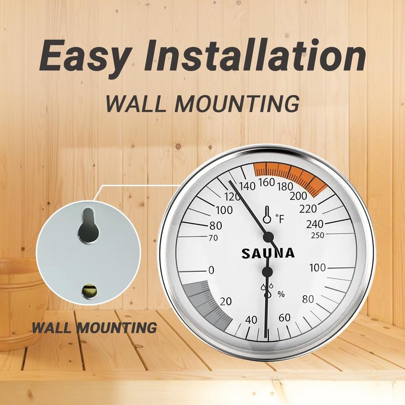 - Large dial design, clear and easy to read - Equipped with a 3.94-inch large diameter dial and clear markings, data can be easily read from any angle, ensuring you have a clear understanding of temperature and humidity changes in the sauna room.