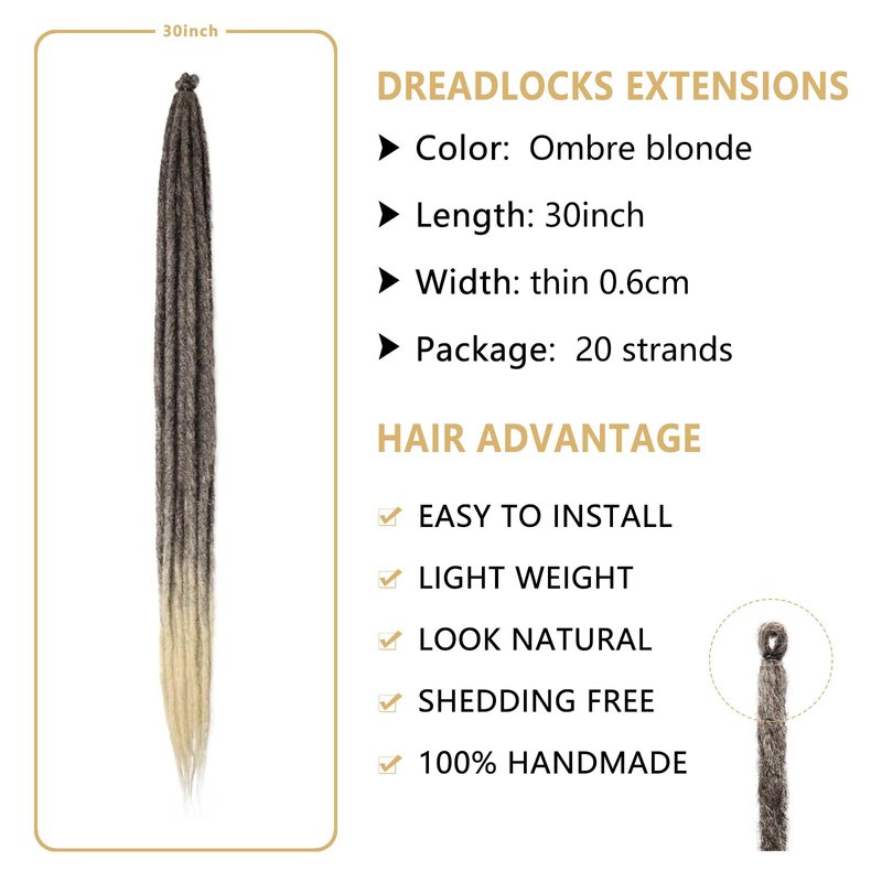 - Handmade:Achieve the perfect Hippie dreads with our 30 Inch Dreadlock Extensions. The braids are handmade and soft, allowing you to embrace your free-spirited gypsy style.