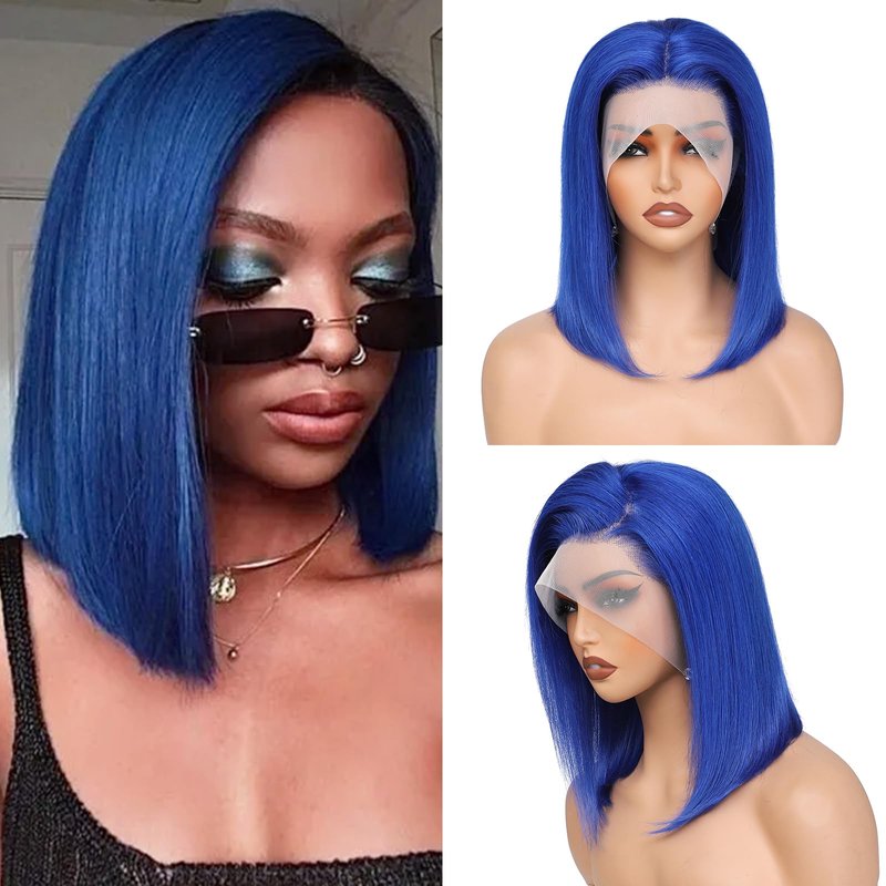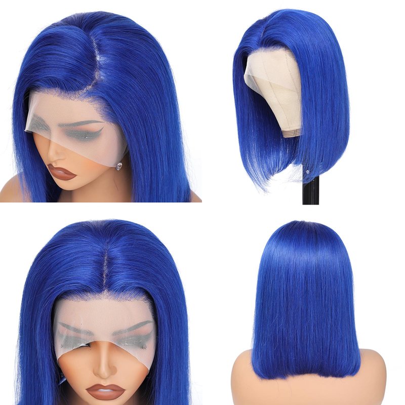 Savasana Blue Human Hair Bob Wig 13x4 Lace Front Glueless Wigs 180% Density 10 Inches Straight Bob Wigs