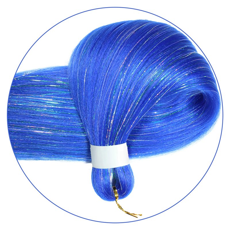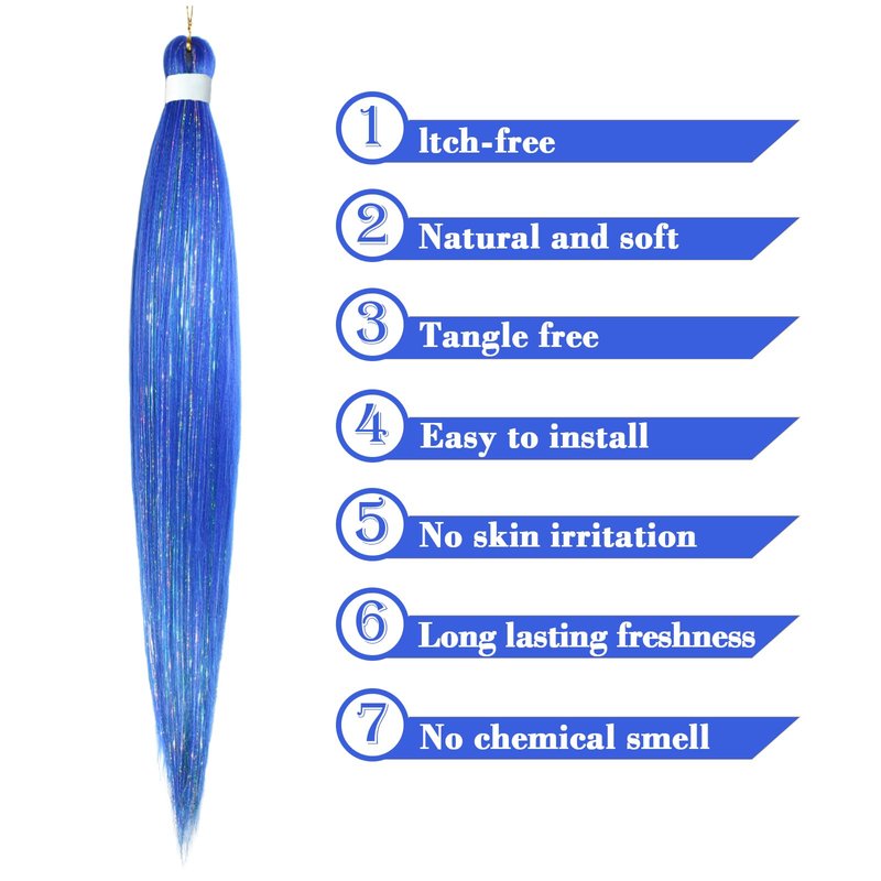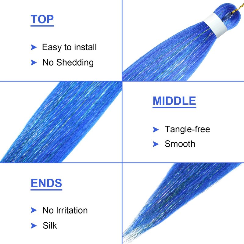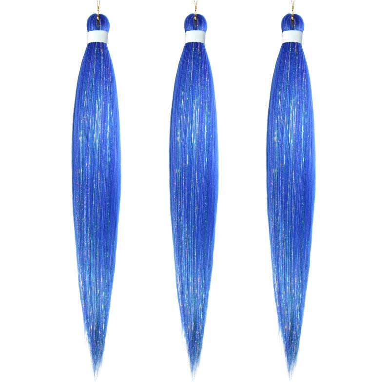 Savasana Dark Blue with Tinsel Pre stretched Braiding Hair, 26 Inches Kanekalon Box Braids Hair Extensions, 3 Packs Yaki Texture Braiding Hair Pre stretched