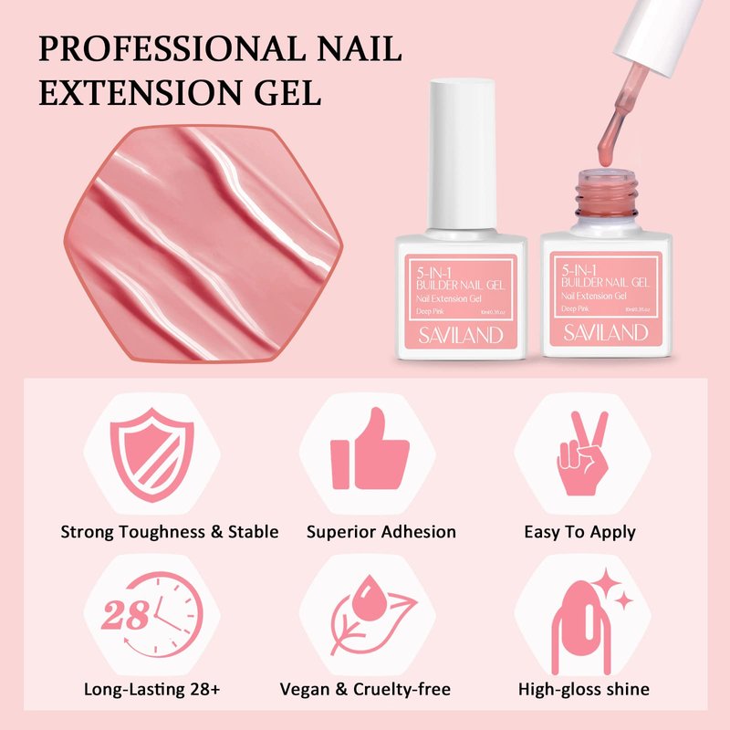 - 🌸【Environmental & Healthy】Saviland gel builder for nails is made from harmless ingredients to ensure it is safe and odorless. With good tenacity and highly pigmented, builder in a bottle gel will bring you brilliant shine finish, smooth appearance and flawless coverage.