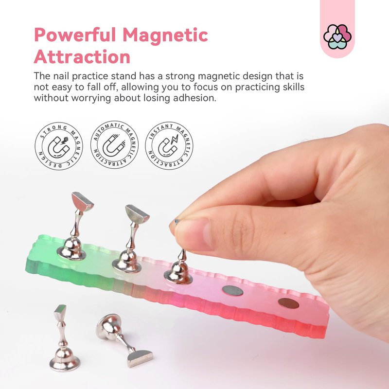 - 💚Unique Magnetic Design - The nail stand for press on features metal magnetic surfaces, the magnet at the bottom is sturdy, easily absorb the iron piece on the top of the crystal base, easy to use and keep firmly, convenient to pick and place, make your nail art training process more convenient and thoughtful. Nail tech must haves, great add-ons for your press on nail kit.