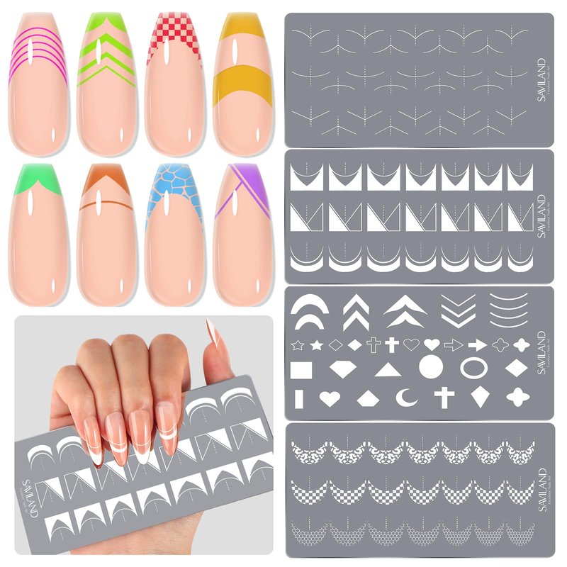 - 4PCS Nail Stamping Plates: SAVILAND Nail Stamping Plate set features 4 nail art stamp plates with over 60 patterns, including Stripes, Heart, and Star designs to create over 1000+ nail art designs. (Note: Stamper and scraper not included.)