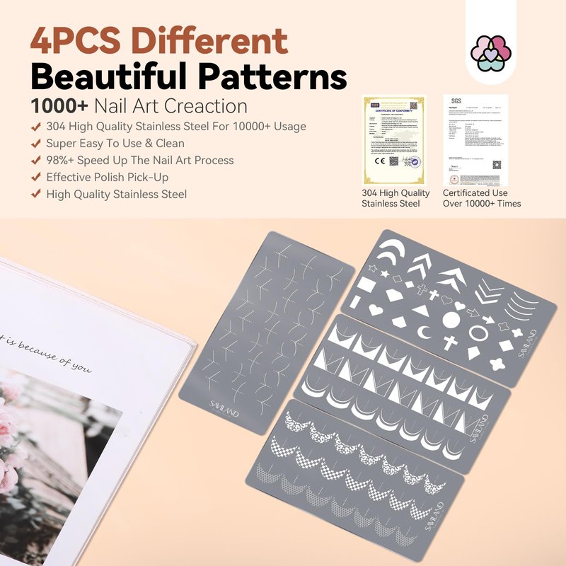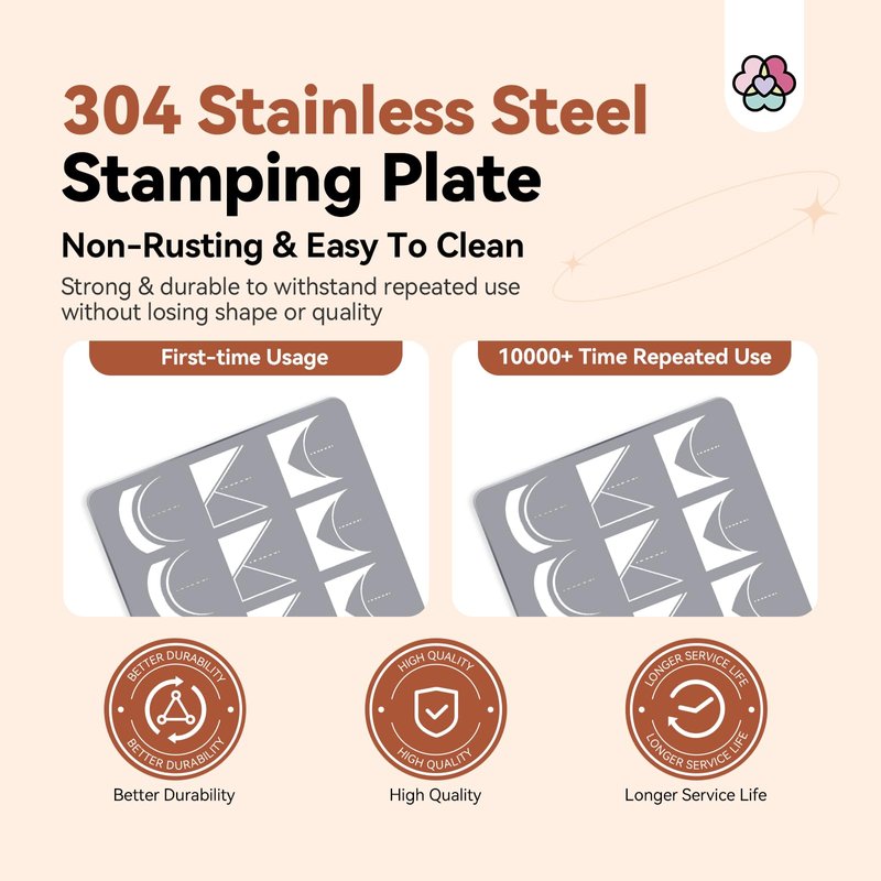 - Durable 304 Stainless Steel: Crafted from durable 304 stainless steel for long-lasting quality and corrosion resistance in creating beautiful nail art. Ensures that the plate maintains its shape, quality, and flawless finish even after multiple uses, making it a reliable and long-lasting tool for creating stunning nail art designs.