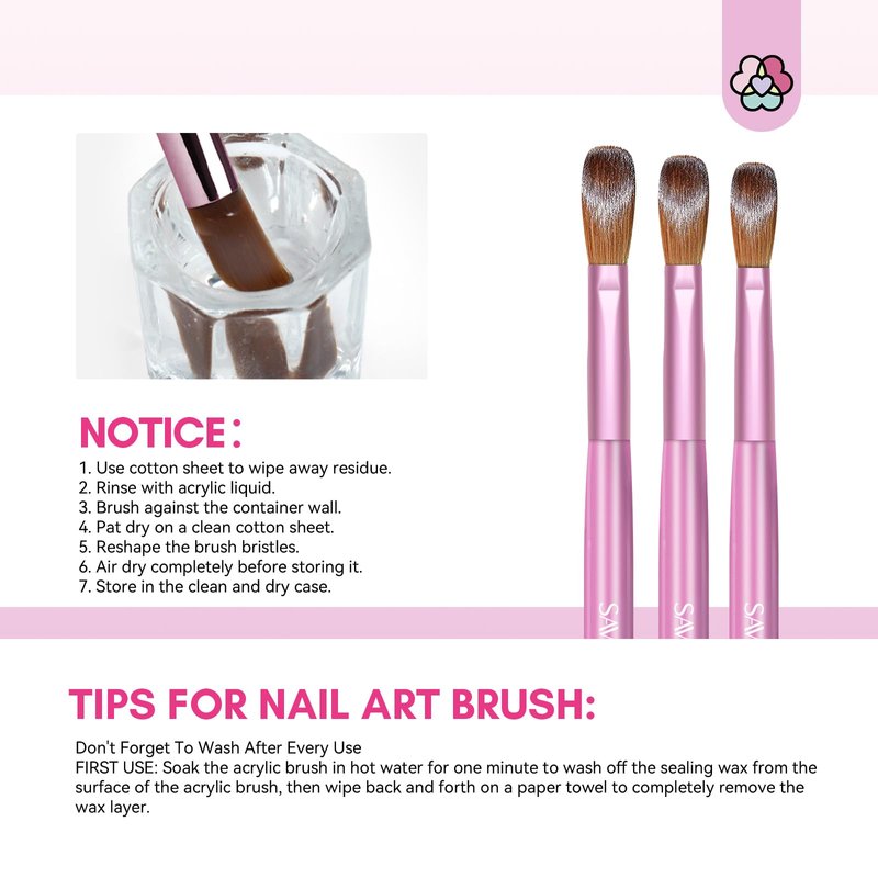 - 🌹【Best Service】After each use, clear acrylic clumps from the bristles with a cotton pad. Instantly soak the brush in acrylic liquid to cleanse and prevent caking. Remember to brush gently and avoid excessive soaking to prevent bristle fraying. If you have any problems, please contact us at any time, we will do our best to help you.