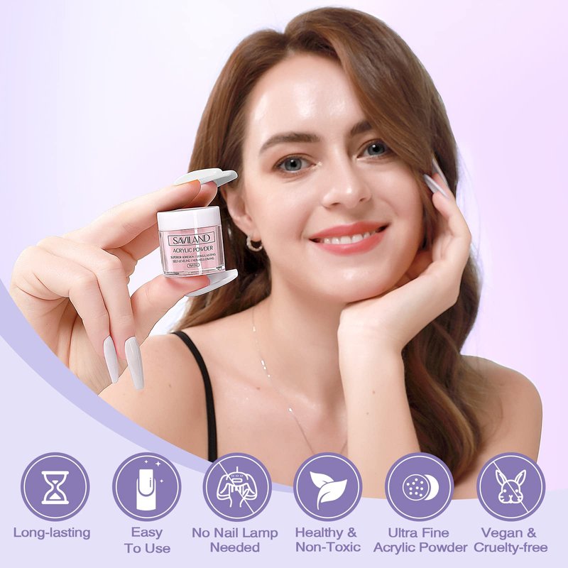 - Ideal Gift AND Sincere Service: SAVILAND all-in-1 Upgraded Acrylic Nail Set is a must have nail set product and the best gift choice for nail beginners, nail lovers and yourself. With this delicate acrylic nail kit, you can DIY acrylic nails at home or anywhere, easy to get long-lasting and strong, super bright, and wearable extension nails