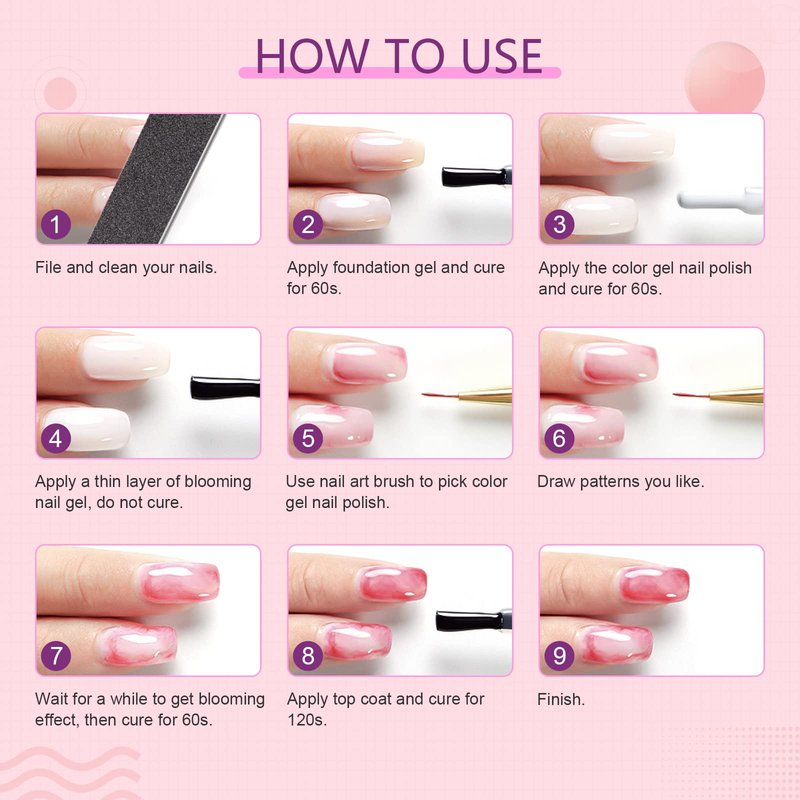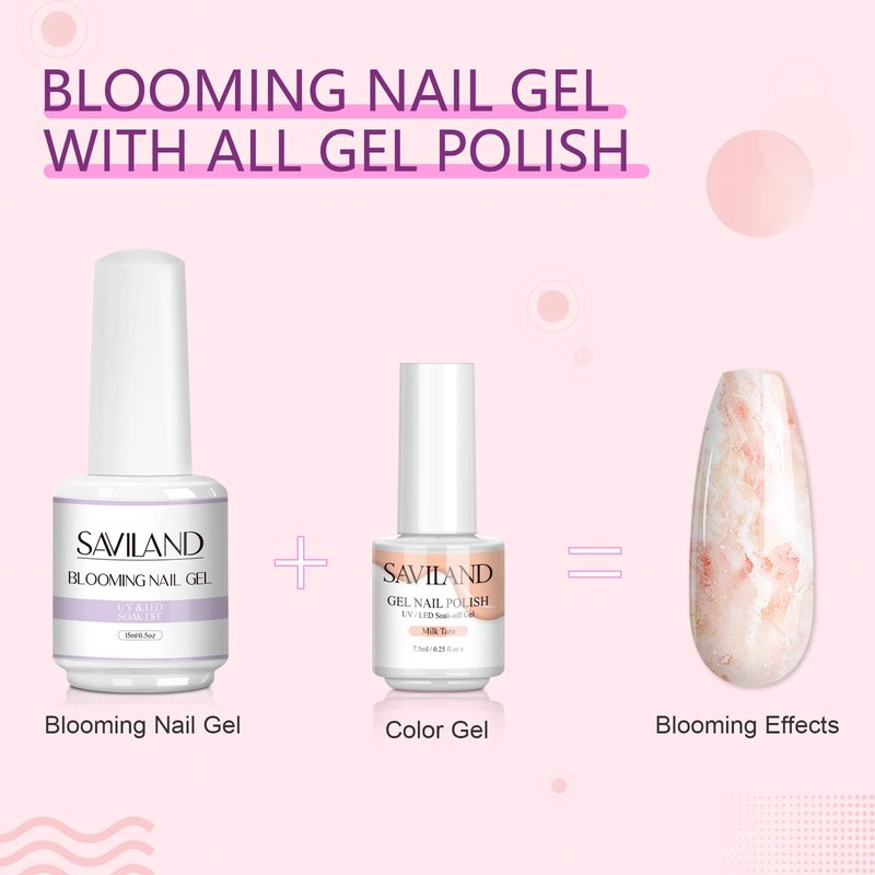 - 💭 IDEAL GIFT: Saviland blooming gels for nails can help you DIY nail art design and create nail salon effects effortless at home to save time and money. With our blossom gel, you can DIY nail art with good coloring and strong toughness so that the blooming effect can be maintained for a long time. Because of its many advantages, it is an ideal gift for your girlfriend, family members or friends.