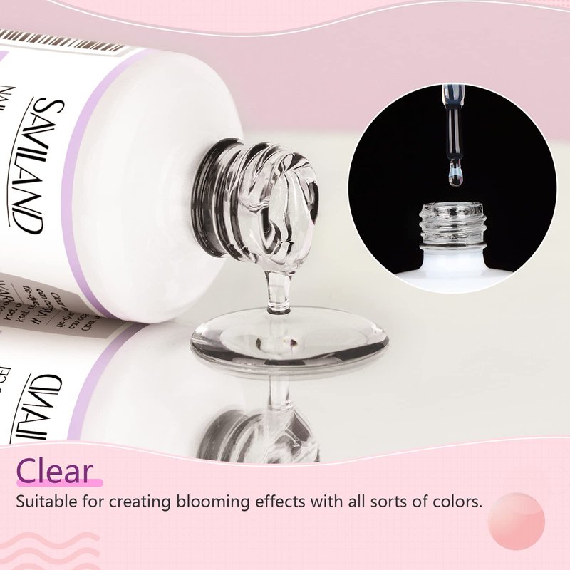 - 💅 CLEAR BLOOMING NAIL GEL: Saviland blooming nail gel gives you an amazing blooming effect with a nail art brush. Our clear blooming nail gel nail polish is suitable for all nail styles and works with a variety of colored gel polishes to create a gorgeous blooming pattern effect on your nails. Our marble gel nail polish is already equipped with nail art brush for your convenience.