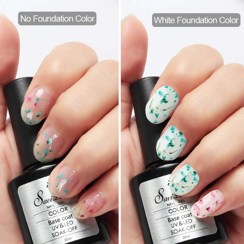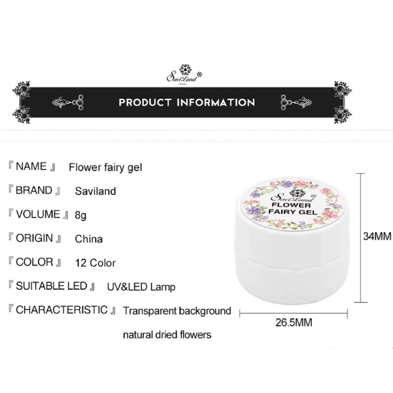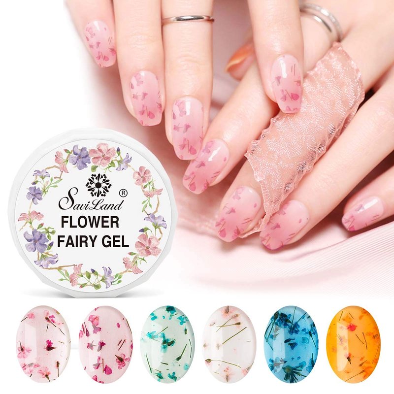 Saviland Dried Flower Gel Nail Polish, 6 Colors Soak Off U V LED Nail Varnish Decoration Manicure Nail Art Design Kit (Pink Blue Yellow)