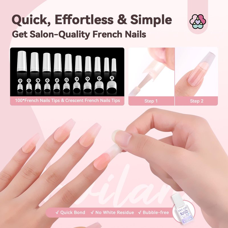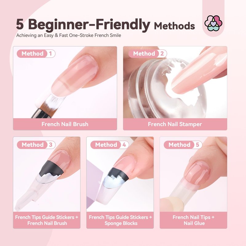 - 🌺 【French Nails Kit for Beginners】They allow for a one-stroke application to finish French nails effortlessly. This ensures that beginners can create flawless and professional-looking French nails in just 10s with ease. The kit is truly beginner-friendly and suitable for both starters and professionals alike.