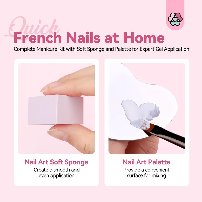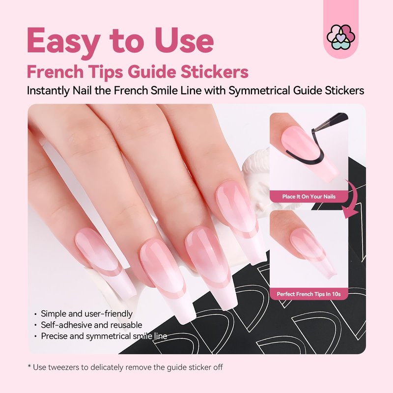 - 💅【Easy & Quick French Nail Stickers】The kit allowing even beginners to create flawless French nails effortlessly in just 10 seconds. And it's easy to create a gradient French manicure in 3 seconds using a sponge!