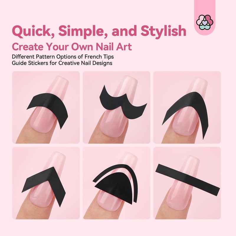 - 💅【Advanced French Tips Guide Stickers】The stickers offer easy peel-off design, making them simple to remove without any residue or damage to your nails. The stickers also come in a wider size, ensuring a better fit for various nail shapes and sizes.