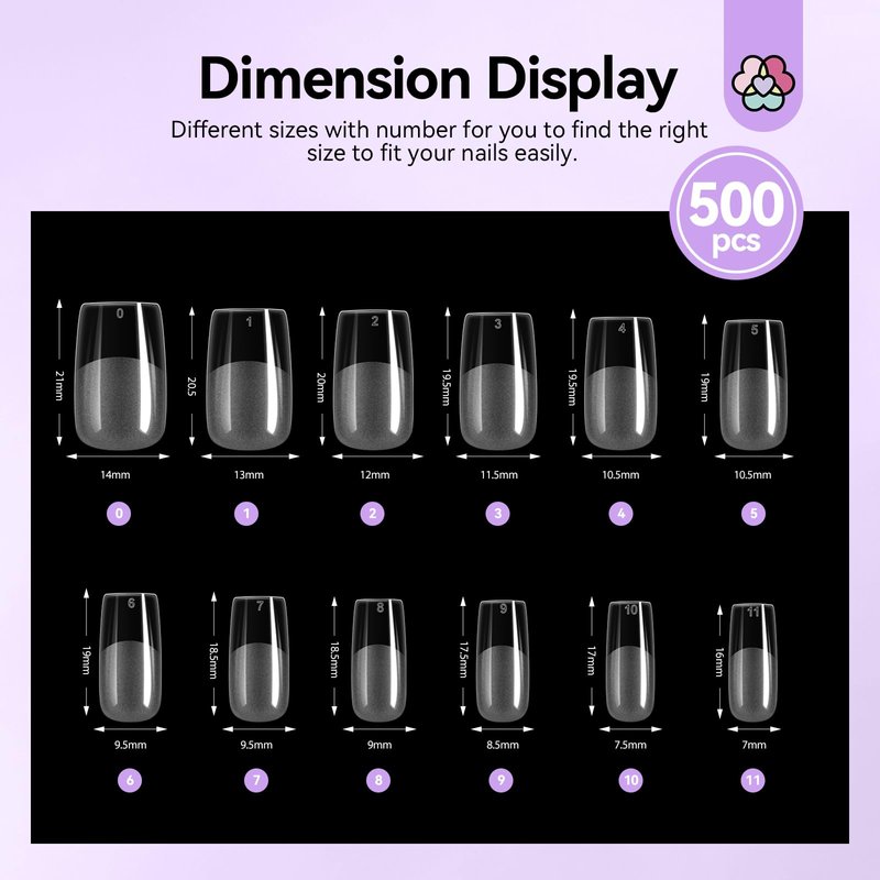 - 【Lightweight Nail Tips for Wide Use】Saviland nail tips and glue gel kit contains 500pcs medium square soft gel nail tips are feather-light and fit like natural nails. Made of natural resin material, non-toxic and harmless, with good elasticity and toughness. Create a healthy, beautiful and comfortable manicure experience.