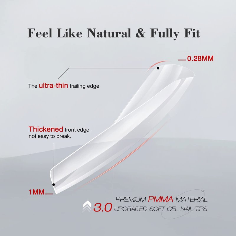 - PREMIUM QUALITY GEL X NAIL TIPS: 500 pcs nail tips with 10 different sizes (50 pieces of each size) are easy to choose the suitable size for every finger. Coffin shaped acrylic nails are easy to trim, applied and designed with nail glues and gel nail polish, also perfect for poly gel. It looks natural and nice, holding the color without separating or bending, making your tips beautiful. No toxic, No smell, No harm to your nails or body and makes the nails durable & natural