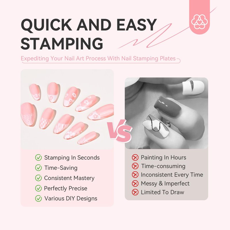 - Nail Art Stamping Plates: The nail stamp plates are easy to use, it simplifies the process of creating beautiful nail art designs. For Nail Stamping Polish(not the regular nail polish) Transfer Design. The template has a smooth surface and sharp, defined patterns that transfer onto your nails with ease. Deep And Precise Carving Gives You A Better Stamping Effect
