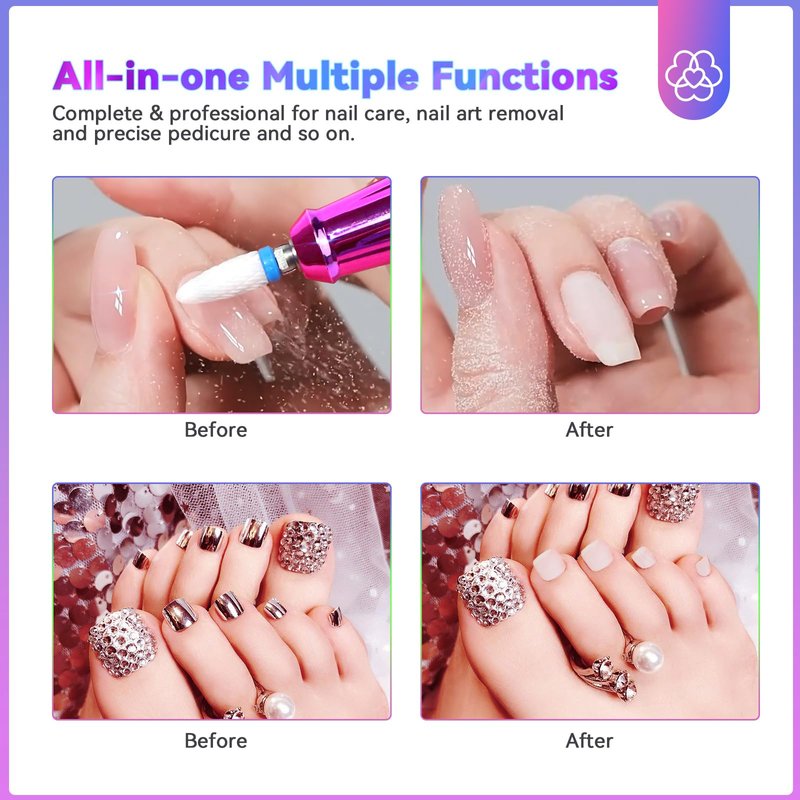 - 💠Warm Tips & Best Service - When you first time to use the electric nail drill, it is recommended to use from low speed for safety. Please do not touch the drill bit in the electric nail filer with your hands when rotating at high speed. If you have any question about our nail drill machine for acrylic nails, please feel free to tell us, we will try our best to help you.