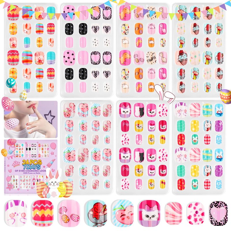 - 【Saviland 7-day Styling & Various Styles Kids Press on Nails】Saviland press on nails for girls can be changed at will throughout the week, and they will feel fresh every day. Our kids press on nails for little girls from animal patterns of rabbits, cats, dinosaurs, to heart shapes, etc., it contains 3 Easter theme patterns, which can enhance the festive atmosphere.