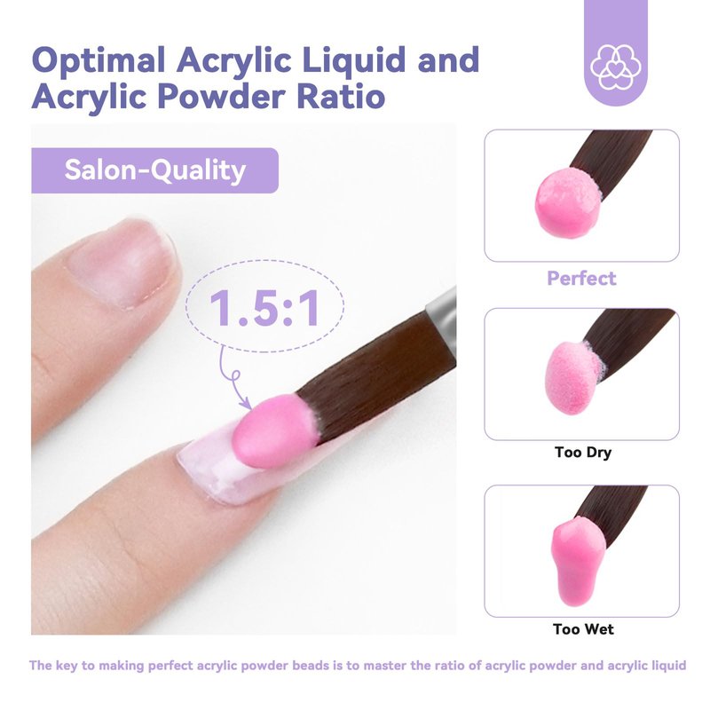 - šćWarm Tips & Sincere Servicećkeep the acrylic liquid for acrylic powder and acrylic nail brushes away from sunlight and heat. Pay attention to ventilation when making acrylic nails and acrylic application. If you have any problems with this acrylic nail liquid for acrylic applications, please feel free to contact our customer service team, we will do our best to help you solve the problem. Happy shopping~