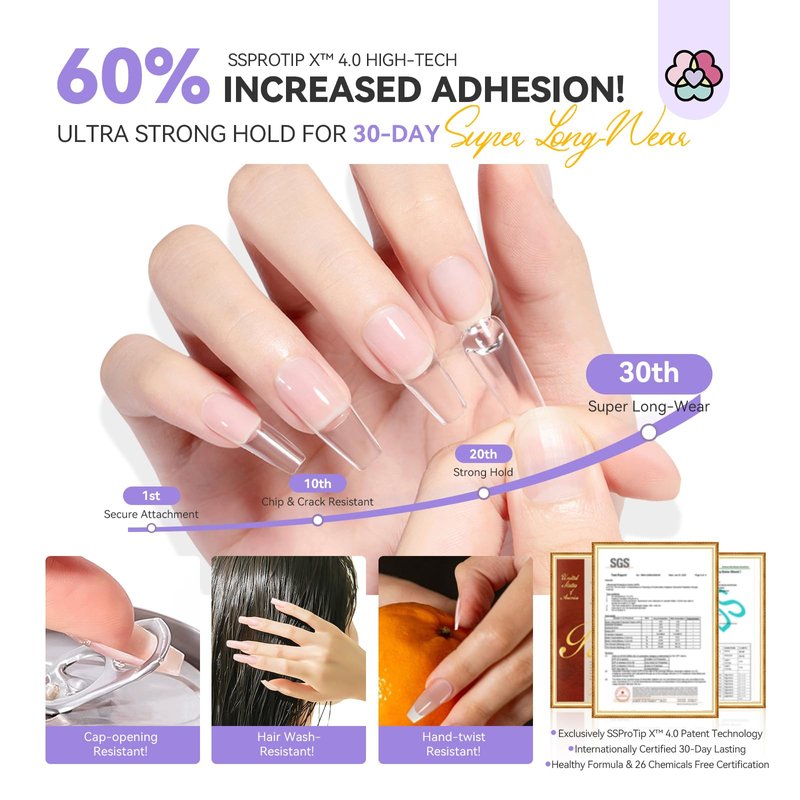 - SSProTip X 4.0 Tech For 30-Day Long-Wear: SAVILAND SSProTip X 4.0 Tip Solid Extend Gel have strong bonding. It incorporates natural extracts such as tree resin and propolis, increase adhesion by 60%, enhancing longevity by 40%, making it less prone to detachment, capable of remaining intact for up to 30 days