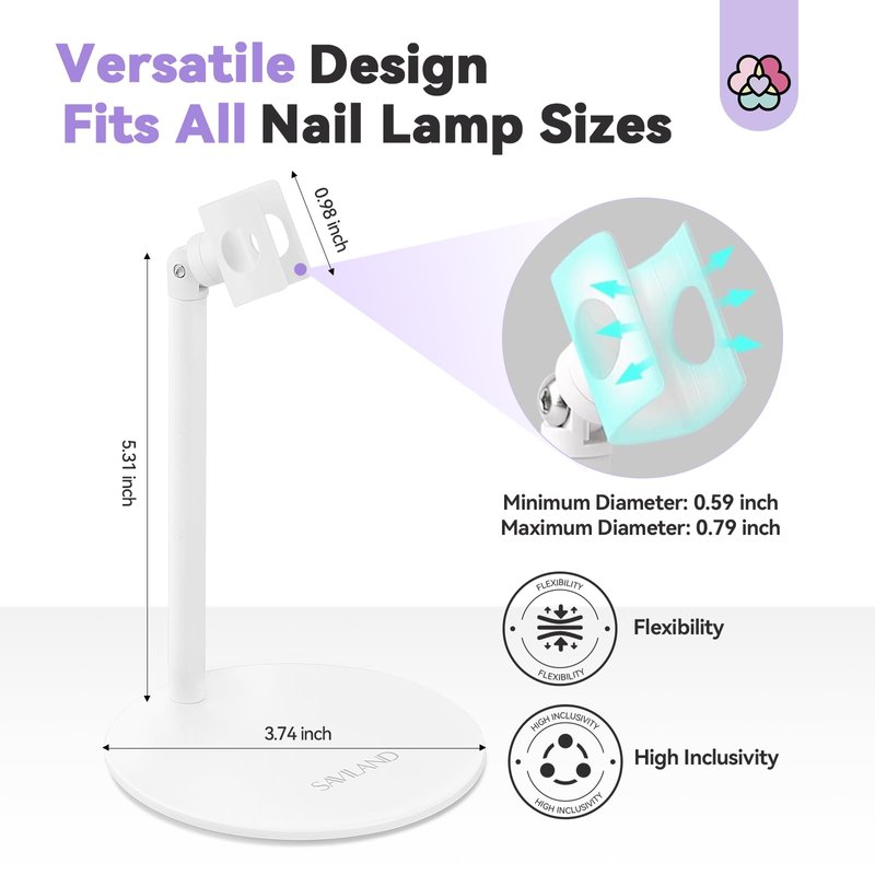 SAVILAND U V Nail Lamp Stand: Sturdy Only U V Light Stand for Gel Nails Polish 360° Adjustable Magnetic Rotation U V Nail Light Stand Portable Handsfree Builder Nail Gel Lamp Stand Home Salon Manicure