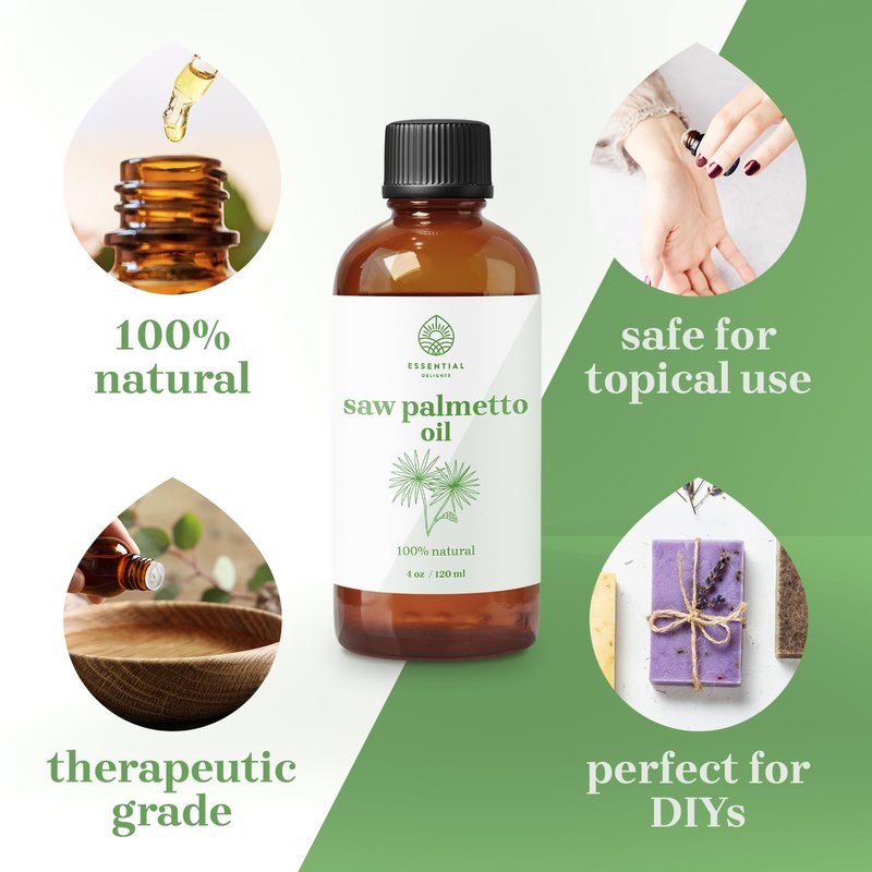 Saw Palmetto Oil - Premium Undiluted Carrier Oil by Essential Delights (4 oz.) | for Skin, Face, Body, Hair Revitalization | Vegan & Cruelty Free