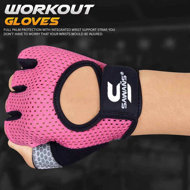 SAWANS Workout Gloves for Men and Women Weight Lifting Gloves Gym Fitness Exercise Cycling Pull ups Microfiber Lightweight Breathable Non-Slip Silicone Padded Palm Grip (Pink, Medium)