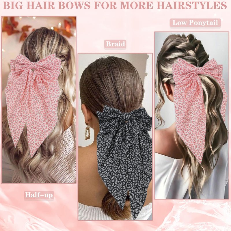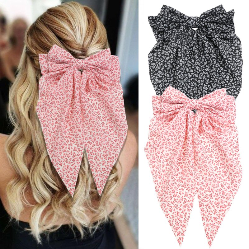 - BOWKNOT CLIP WITH LONG TAIL-- 2PCS Flowers Ribbon Hair Clips Bowknot, Ribbon Hair Clips is approximately | 7.6 x 14.2 inches. The large Ribbon bow Hair Clips can effectively hold the hair in place without sliding down or popping out.