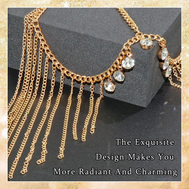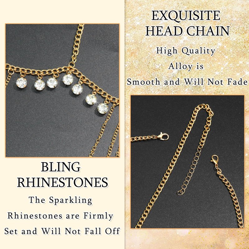 - Fashion Design: The main body of this Gold Head Chain is made up of three golden tassel main chains, with multiple short tassels on both sides, and seven rhinestone pendants on the forehead. It looks sparkling and the design is very delicate, making you shiny in the crowd.