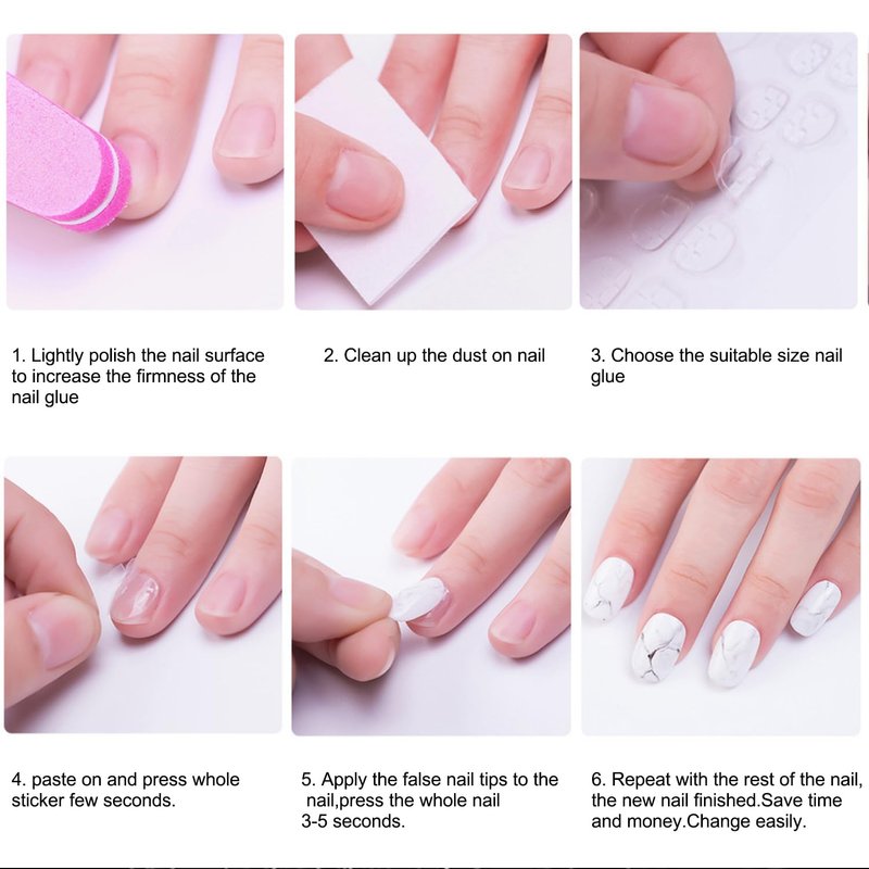 - 【Friendly to Your Nail and False Nails】These double-sided nail glue stickers are easy to use and remove;Harmless for your nature nails and false nail tips,make the false nail reuse.Without the mess and hassle of traditional nail glue.An essentials for false nails.