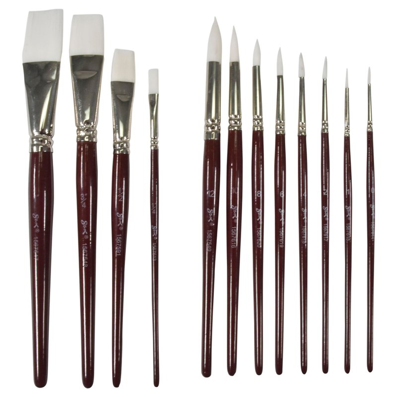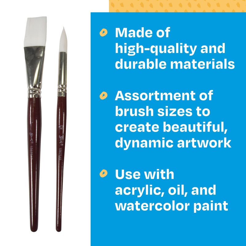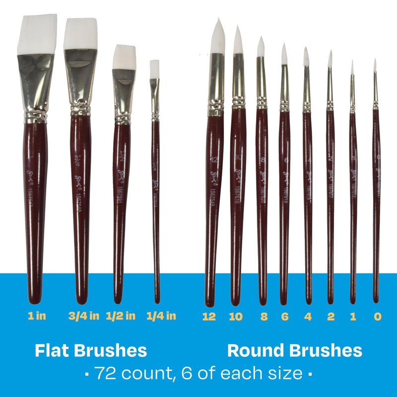 Sax Optimum White Synthetic Taklon Paint Brushes, Assorted Sizes, Set of 72
