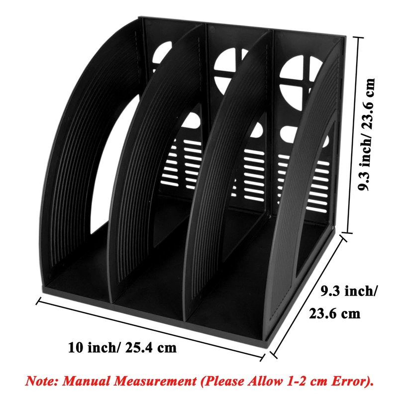 SAYEEC Magazine Holder Desk File Organizer Plastic 3 Compartment File Holder Folder Stand File Divider Document Cabinet Rack Book Storage Organizer Filling Box (Black)
