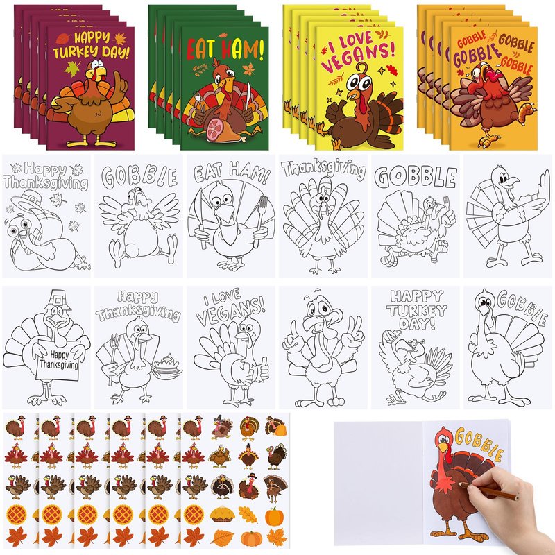 - Thanksgiving Coloring Books Sets: this set includes 20 beautifully designed Thanksgiving coloring books with 4 turkey-themed styles and 40 festive stickers, each containing 20 small stickers; Thanksgiving coloring book kits offers endless creative possibilities for the Thanksgiving season