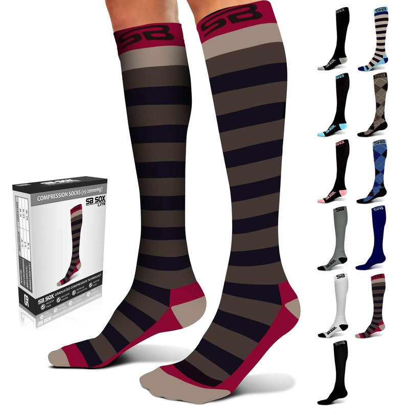 SB SOX Lite Compression Socks (15-20mmHg) for Men & Women – Best Socks for All Day Wear! (Stripes - Gray/Purple, S/M)